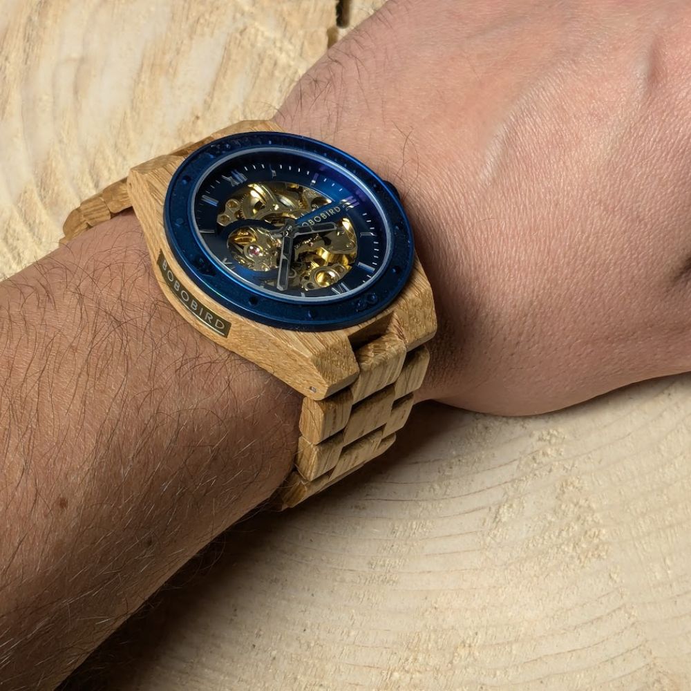 - Évitez l'eau : Ne pas immerger la montre dans l'eau, car l'humidité peut endommager le bois. Retirez-la avant de nager ou de vous laver les mains.